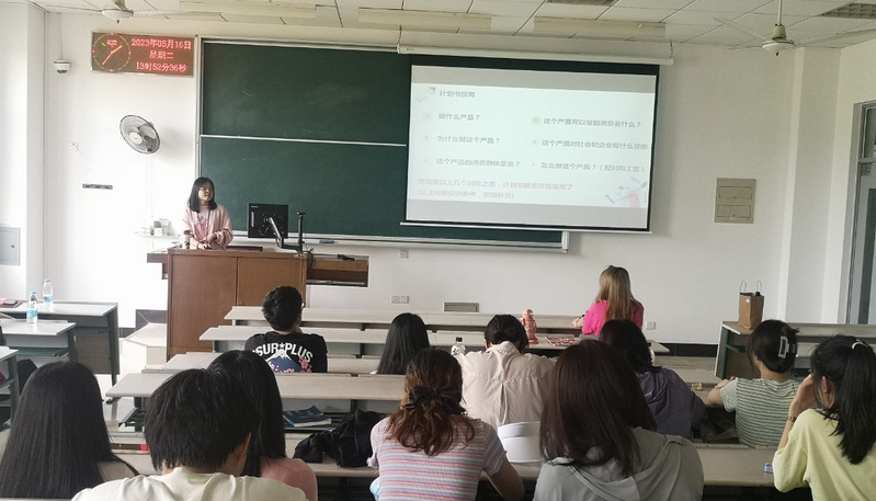 最后,bet娱乐365官网去年获奖的代表江梦琪同学给大家分享了她们产品“胃,别躺平”的参赛经验,分别从产品取名,灵感来源,计划书撰写,产品制作等四个方面具体介绍了她的参赛历程。