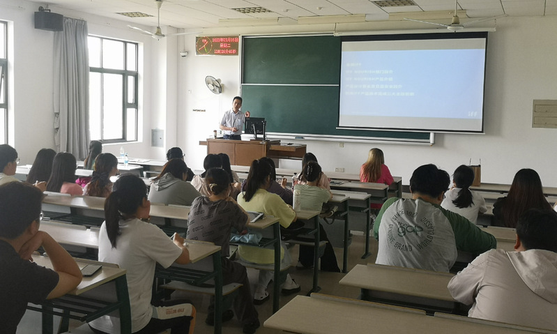 然后,殷海洋总经理为了让同学们更好的参赛,介绍了IFF部门简介、产品介绍、产品设计要素及食品安全简介以及利用IFF产品技术完成三大主题创新,并特别强调了产品的保质期。