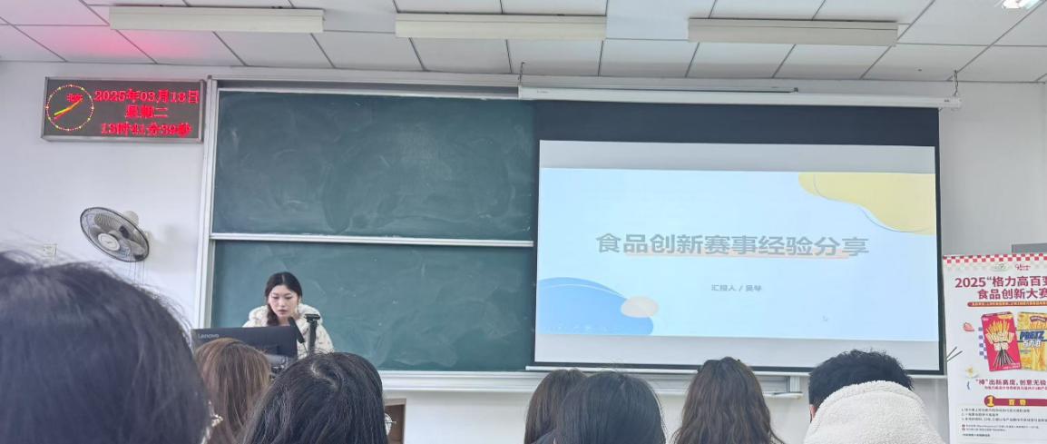 最后,在交流互动环节,同学们积极提问,就食品创新方向、食品包装设计等方面展开讨论,在场的老师们也耐心地解答了问题,并鼓励同学们勇敢尝试,不断创新。