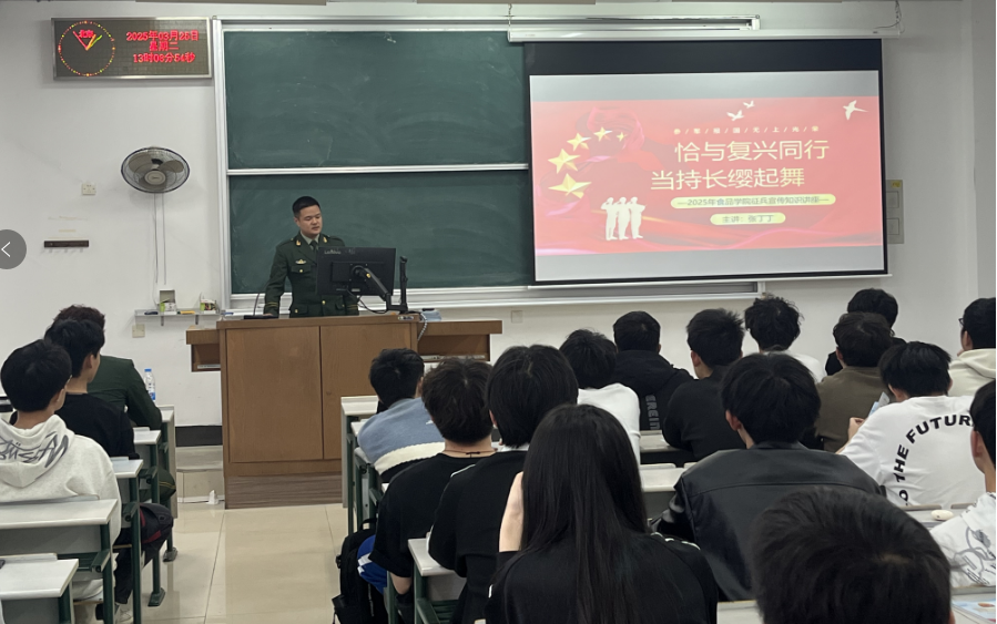在报国的征程上,青春永远不会迟到。为积极响应国家征兵号召,推动国防教育与专业教育紧密融合,点燃青年学子的参军热情,3月25日下午,bet娱乐365官网正规在1113教室开展了一场别开生面的征兵宣讲会。本次宣讲会由学院征兵负责人卢惠妮老师主持,吸引了众多学生参与。