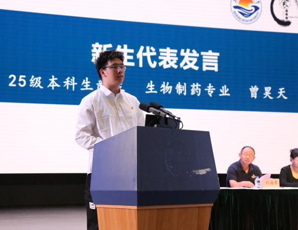 典礼在庄严的国歌声中拉开序幕。随后,新老学生代表以“成长三部曲”为主题,从不同视角分享了他们对未来学习科研生涯的思考与规划。2025级生物制药专业本科生新生曾昊天以“如何迈出坚实的食品人的第一步?”叩问初心,强调打好专业基础、培养科学思维和践行食品人责任的重要性;2025级生物与医药专业研究生新生朱赛君接过接力棒,提出“如何攻破关键的卡脖子第一问”,展现了新生代研究生瞄准国家重大需求、勇攀科研高峰的锐气和担当;2025级食品科学与工程专业博一学生桂美娇则以“过来人”的身份,围绕“如何跨越学术生涯的第一关”分享了克服困难、坚定信念的经验,为新同学提供了宝贵的借鉴。三场发言层层递进,从夯实基础到勇闯前沿再到攻坚克难,生动勾勒出一条从“新食品人”成长为“卓越食品人”的奋进之路。