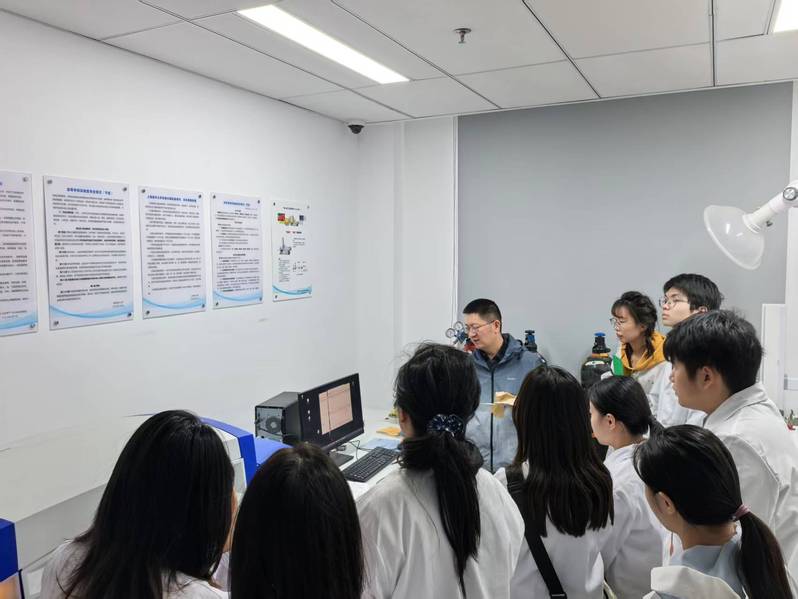在实操环节中,设备工程师则讲解了开机的注意事项,包括检查气源与压力。从仪器开机预热、样品池清洁与安装,到检测参数设置(波长范围、扫描速度、信号累加次数)、样品进样与数据采集,再到实验结束后的仪器关机与数据导出,每个步骤均由工程师示范后,参训人员进行动手操作。最后,还结合学生在自身研究方向中的应用与存在问题等方面进行耐心解答。